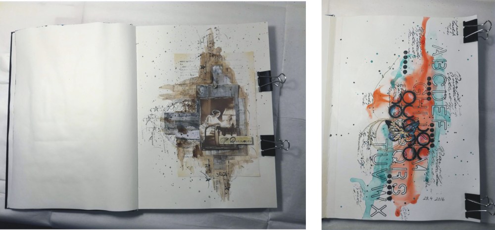 - Pari kuvaa harjoituskirjasta, jonka avulla harjoittelen erilaisia tekniikoita.