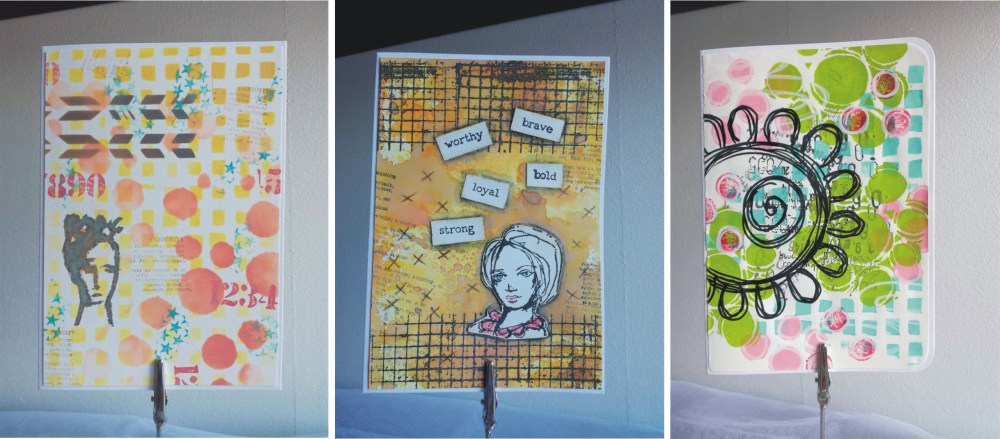 - Valmiita kortteja: nämä korttipohjat on tehty vesiväreillä ja leimasinmusteella, kuvat leimasimilla.